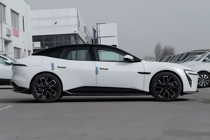 车身侧面,整体线条流畅,腰线从前翼子板延伸至尾灯处形成自然上扬的姿态,营造出前低后高的视觉冲击。隐藏式门把手、无框车门与悬浮式车顶构成现代新能源车的典型元素,而阿维塔06通过细节把这些元素整合得更加协调。20英寸低风阻轮毂与哑光饰面搭配,既保证了视觉张力,也在风阻优化上发挥作用。轮胎采用米其林专为新能源车型定制的低滚阻系列,静音性与抓地力兼顾。整车风阻系数控制在0.25Cd,在同级别中属于不错的水平。